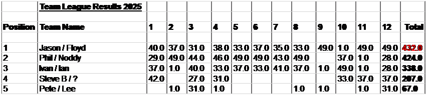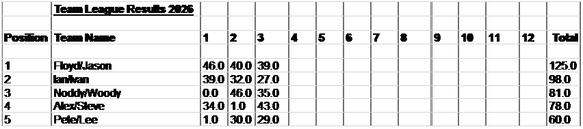 Teams to consist of two members, plus one reserve, each member paying five pounds entry fees, the fees will form a monetary prize and be paid back to the winners at the end of the year. An additional prize will be given for the best specimen caught over the whole competition |